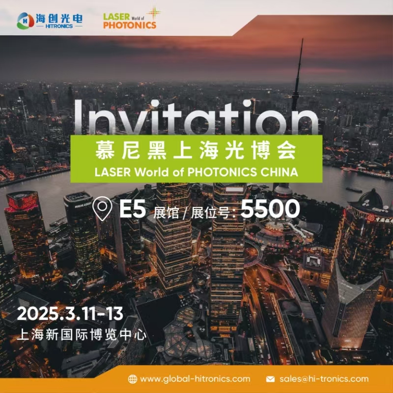 ● 展会名称: 2025慕尼黑上海光博会● 展会时间:3月11-13日(周二~周四)● 展馆号:E5● 展位号:5500● 展馆地址:上海新国际博览中心,上海市浦东新区龙阳路2345号
