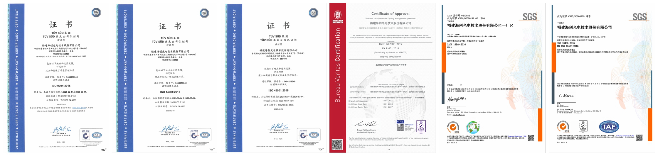 海创光电致力于保持最高的质量标准,并不断投入并优化我们的质量体系。已获得如下证书: